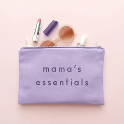 Mama's Essentials Lavender Makeup Pouch - Canvas Makeup Bag - Lavender Canvas Pouch - Clutch Bag - Slogan Pouch - Gift for Mum
