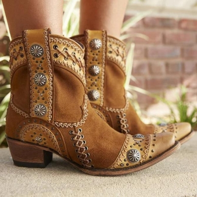 Outdoor Artificial Leather Embroidery Boots