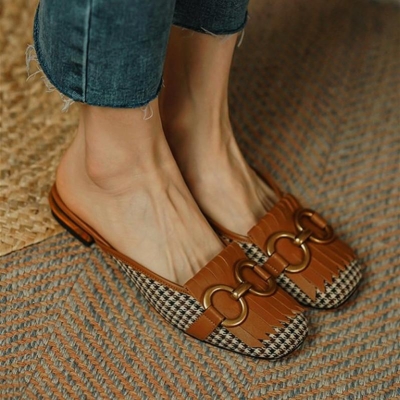Patchwork Sqaure-toe Flat Mule Slip-on Shoes